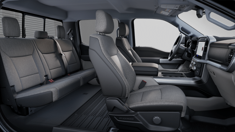 Bed Utility Package (4 Pickup Box Tie-Down Plates, LED Box Lighting, and Tailgate Step w/Tailgate Work Surface), Equipment Group 302A Mid (360 Degree Camera, 400W Cab & Bed Outlets, 6 Angular Bright Anodized Step Bar, Adaptive Cruise Control w/Stop & Go, Auto-Dimming Rear-View Mirror, Black Painted Grille w/Chrome Center Bar, Chrome Door & Tailgate Handles, Chrome Single-Tip Exhaust, Connected Navigation, Driver State Detection, Dual-Zone Electronic Automatic Temperature Control, Evasive Steering Assist, Ford Co-Pilot360 Assist 2.0, Front Parking Sensors, Heated Front Seats, Intelligent Access w/Push Button Start, Power Glass Heated Sideview Mirrors, Power-Sliding Rear Window, Remote Start System w/Remote Tailgate Release, Towing Technology, and Wrapped Steering Wheel), Mobile Office Package (Console Worksurface and Partitioned Lockable Rear Storage), Tow/Haul Package, 4-Wheel Disc Brakes, 6 Speakers, ABS brakes, Air Conditioning, Alloy wheels, AM/FM radio: SiriusXM with 360L, Auto High-beam Headlights, Brake assist, Bumpers: chrome, Chrome wheels, Cloth 40/20/40 Front Seat, Compass, Delay-off headlights, Driver door bin, Driver vanity mirror, Dual front impact airbags, Dual front side impact airbags, Electronic Stability Control, Emergency communication system: SYNC 4 911 Assist, Front anti-roll bar, Front Center Armrest, Front fog lights, Front reading lights, Front wheel independent suspension, Fully automatic headlights, Heated door mirrors, Illuminated entry, Low tire pressure warning, Manual-Folding Heated Pwr Glass Trailer Tow Mirror, Occupant sensing airbag, Outside temperature display, Overhead airbag, Overhead console, Panic alarm, Passenger door bin, Passenger vanity mirror, Power door mirrors, Power steering, Power windows, Radio data system, Radio: AM/FM Stereo w/SiriusXM 360L, Rear Parking Sensors, Rear reading lights, Rear step bumper, Rear window defroster, Remote keyless entry, Security system, Speed control, Split folding rear seat, Steering wheel mounted audio controls, SYNC 4 w/Enhanced Voice Recognition, Tachometer, Telescoping steering wheel, Tilt steering wheel, Traction control, Tray Style Floor Liner w/Carpet Mats, Trip computer, Variably intermittent wipers, Voltmeter, Wheels: 18 Chrome-Like PVD, and Wheels: 20 Chrome-Like PVD.