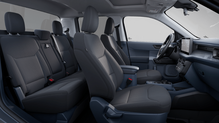 Black Appearance Package (Black Grille, Black Interior Accents, Black Painted Mirrors, Front & Back Black Edition Ford Logo, Unique Cloth Front Bucket Seats w/Black Appearance, and Wheels: 19 Black Painted Aluminum), Equipment Group 302A, XLT Luxury Package (400W Inverter w/USB Console Rear, Heated Mirror w/Painted Black Skull Caps, Heated Seats, LED Box Lighting, Remote Start System, and Soft Vinyl Wrapped Heated Steering Wheel), 2.91 Axle Ratio, 4-Wheel Disc Brakes, 6 Speakers, ABS brakes, Air Conditioning, Alloy wheels, AM/FM radio: SiriusXM with 360L, Apple CarPlay/Android Auto, Auto High Beams, Auto High-beam Headlights, Automatic temperature control, Brake assist, Bumpers: body-color, Compass, Delay-off headlights, Driver door bin, Driver vanity mirror, Dual front impact airbags, Dual front side impact airbags, Electronic Stability Control, Emergency communication system: SYNC 4 911 Assist, Exterior Parking Camera Rear, Four wheel independent suspension, Front & Rear Floor Liners w/o Carpet Mats, Front anti-roll bar, Front Bucket Seats, Front Center Armrest, Front reading lights, Fully automatic headlights, Illuminated entry, Internet access capable: FordPass Connect 5G, Knee airbag, Low tire pressure warning, Occupant sensing airbag, Outside temperature display, Overhead airbag, Overhead console, Panic alarm, Passenger door bin, Passenger vanity mirror, Power door mirrors, Power Moonroof, Power steering, Power windows, Pre-Collision Assist w/Automatic Emergency Braking, Radio data system, Radio: AM/FM Stereo w/6 Speakers, Rear anti-roll bar, Rear seat center armrest, Rear step bumper, Rear-View Camera, Remote keyless entry, Security system, SiriusXM w/360L, Speed control, Speed-sensing steering, Steering wheel mounted audio controls, SYNC 4 w/Enhanced Voice Recognition, Telescoping steering wheel, Tilt steering wheel, Traction control, Trip computer, Unique Cloth Front Bucket Seats, and Wheels: 17 Carbonized Gray Painted Aluminum.