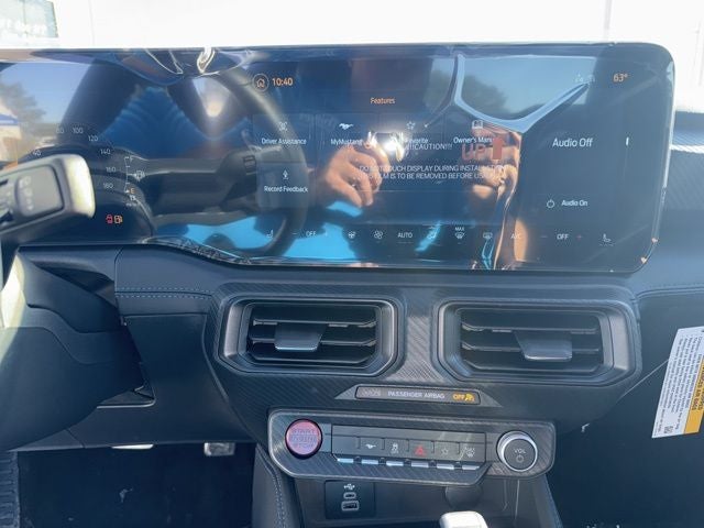 Dark Horse Appearance Package (Notorious Blue Painted Brake Calipers, Painted Black Roof, and Unique Hood Graphic), Equipment Group 700A Deluxe Package (Aluminum Foot Pedals, Approach Detection, Cloth/Vinyl Climate-Controlled Bucket Seats, Driver Seat & Mirrors Memory, and Universal Garage Door Opener (UGDO)), Security Package (Active Anti-Theft System, Locking Center Console, and Wheel Locking Kit), 12 Speakers, 4-Wheel Disc Brakes, ABS brakes, Adaptive suspension, Air Conditioning, Alloy wheels, AM/FM radio: SiriusXM with 360L, AM/FM Stereo, Auto High-beam Headlights, Auto-dimming Rear-View mirror, Automatic temperature control, B&O Sound System by Bang & Olufsen, Brake assist, Bumpers: body-color, Cloth/Vinyl Heated Bucket Seats, Compass, Delay-off headlights, Driver door bin, Driver vanity mirror, Dual front impact airbags, Dual front side impact airbags, Electronic Stability Control, Emergency communication system: 911 Assist, Exterior Parking Camera Rear, Four wheel independent suspension, Front anti-roll bar, Front Bucket Seats, Front Center Armrest, Front dual zone A/C, Front reading lights, Fully automatic headlights, HD Radio, Heated front seats, Heated steering wheel, Illuminated entry, Internet access capable: FordPass Connect, Knee airbag, Low tire pressure warning, Matte Clear Film, Navigation system: Connected Navigation, Occupant sensing airbag, Outside temperature display, Overhead airbag, Overhead console, Panic alarm, Passenger door bin, Passenger vanity mirror, Power door mirrors, Power driver seat, Power passenger seat, Power steering, Power windows, Premium Floor Liners Front & Rear (w/Carpet Mats), Radio data system, Rain sensing wipers, Rear anti-roll bar, Rear Parking Sensors, Rear window defroster, Remote keyless entry, SiriusXM w/360L, Speed control, Speed-sensing steering, Speed-Sensitive Wipers, Split folding rear seat, Spoiler, Sport steering wheel, Steering wheel mounted audio controls, SYNC 4, Tachometer, Telescoping steering wheel, Tilt steering wheel, Traction control, Trip computer, Variably intermittent wipers, Voltmeter, and Wheels: 19 x 9.5 Fr & 19 x 10 Rr Aluminum.