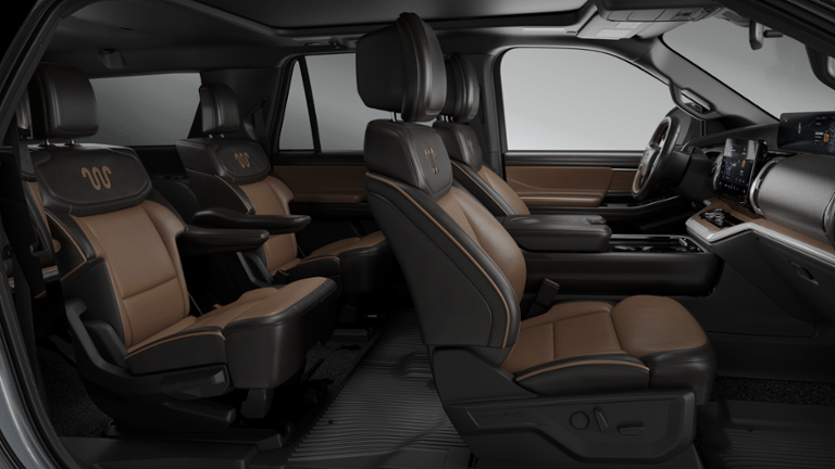 Equipment Group 400A (3.73 Axle Ratio, Digital Device Holder, Heated/Ventilated Premium Del Rio Leather Front Captain's Chairs, and Wheels: 22 x 9.0 Diamond Cut Machined Face Aluminum), Ford Connectivity Package (1-Year Included), 22 Speakers, 3rd row seats: split-bench, 4-Wheel Disc Brakes, ABS brakes, Adaptive suspension, Adjustable pedals, Air Conditioning, Alloy wheels, AM/FM radio: SiriusXM with 360L, Apple CarPlay/Android Auto, Auto High-beam Headlights, Auto-dimming door mirrors, Auto-dimming Rear-View mirror, Automatic temperature control, Brake assist, Bumpers: body-color, Compass, Delay-off headlights, Driver door bin, Driver vanity mirror, Dual front impact airbags, Dual front side impact airbags, Electronic Stability Control, Emergency communication system: 911 Assist, Exterior Parking Camera Rear, Ford Digital Experience, Four wheel independent suspension, Front and 2nd Rows Floor Liners Without Carper Mats, Front anti-roll bar, Front Bucket Seats, Front Center Armrest, Front dual zone A/C, Front reading lights, Fully automatic headlights, Garage door transmitter, Genuine wood dashboard insert, Genuine wood door panel insert, Heated door mirrors, Heated front seats, Heated rear seats, Heated steering wheel, Illuminated entry, Leather steering wheel, Low tire pressure warning, Memory seat, Navigation System, Occupant sensing airbag, Outside temperature display, Overhead airbag, Overhead console, Panic alarm, Passenger door bin, Passenger vanity mirror, Pedal memory, Power door mirrors, Power driver seat, Power moonroof: Vista Roof, Power passenger seat, Power steering, Power windows, Radio data system, Radio: B&O Unleashed Sound System by Bang & Olufsen, Rain sensing wipers, Rear air conditioning, Rear anti-roll bar, Rear reading lights, Rear window defroster, Rear window wiper, Reclining 3rd row seat, Remote keyless entry, Security system, SiriusXM with 360L, Speed control, Speed-sensing steering, Speed-Sensitive Wipers, Split folding rear seat, Spoiler, Steering wheel memory, Steering wheel mounted audio controls, Tachometer, Telescoping steering wheel, Tilt steering wheel, Traction control, Trip computer, Turn signal indicator mirrors, Variably intermittent wipers, Ventilated front seats, and Voltmeter.