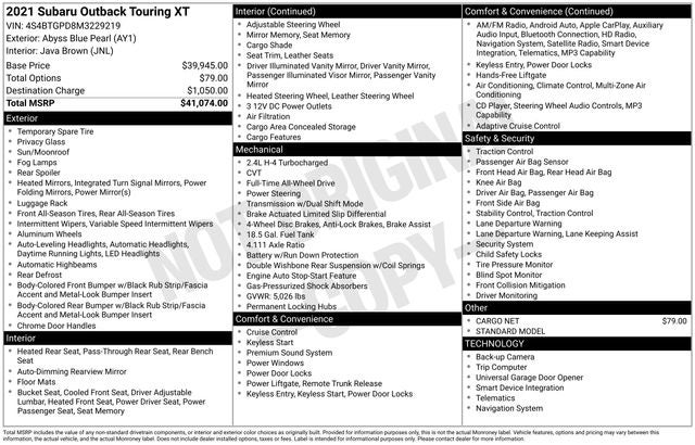 Whether you're tackling the daily commute or embarking on a weekend adventure, this 2021 Subaru Outback Touring XT is the perfect companion. Experience the ultimate in versatility, comfort, and confidence behind the wheel. Schedule a test drive today and let us show you why the Outback is the perfect choice for your next vehicle.