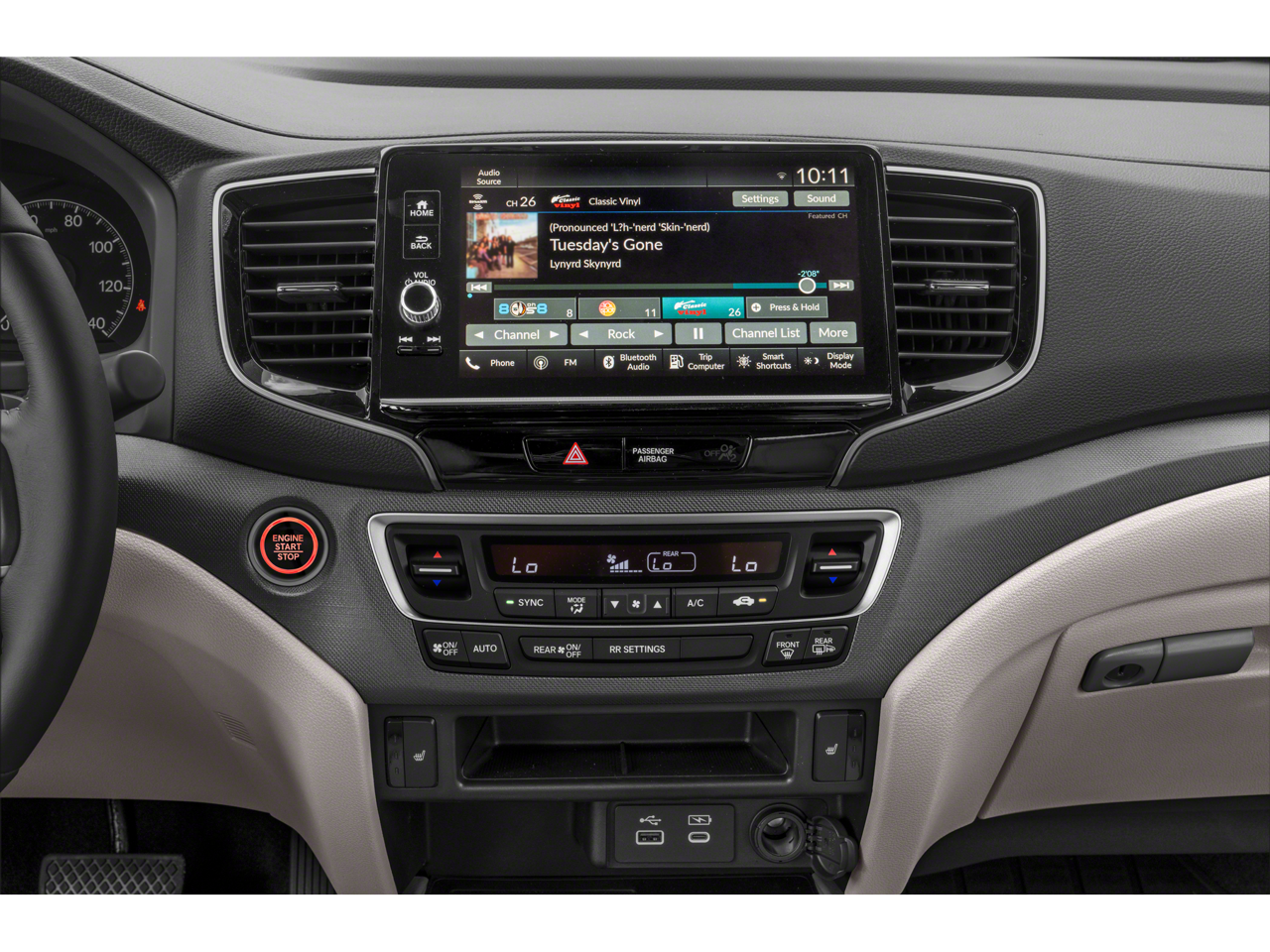 - Radio: 215-Watt Audio System w/7 Speakers -inc: subwoofer, 9" color touchscreen, Bluetooth streaming audio, Speed-Sensitive Volume Compensation (SVC), wireless Apple CarPlay/Android Auto compatibility, 2.5A USB-A data port in front console and HondaLink